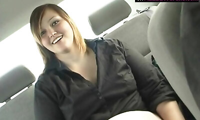 Curvy amateur gal driver fools around on passenger seat