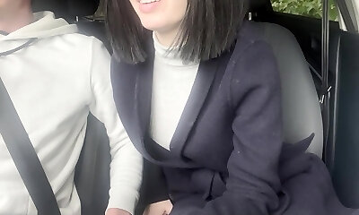 Asian schoolgirl blowing cock in the car