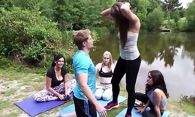 Cougar Teaches Two Hot Teens How To Handle a Cock in CFNM FFFM Foursome