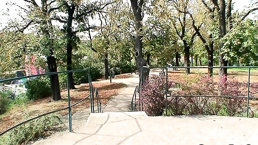 POV outdoors video of busty blonde Lily Joy getting fucked hard