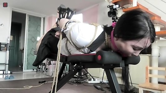 Japanese doll meets the master of bondage spraying