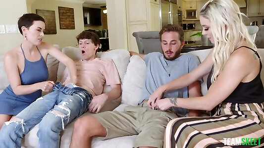 Naughty girls exchange their stepdads for insatiable 4some hook-up