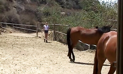 une ado se déchire avec un énorme faux pénis de cheval