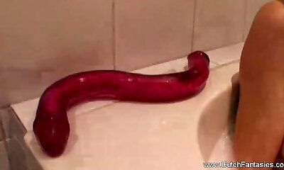 un énorme gode dragon va déchirer son trou du cul sensible
