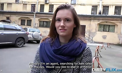 dziewiętnastoletnia starsza dziewczyna próbuje różnych ubrań na jej 1-szy nagi casting